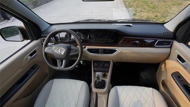驾驶室采用灰白双色皮质座椅,支持6向手动调节与腰部支撑,长时间驾驶不易疲劳。中控台搭载10.25英寸多媒体大屏,集成导航、倒车影像及手机互联功能,配合定速巡航与电子助力转向,城市通勤与郊外行驶均轻松自如。动力方面,东安1.6L自然吸气发动机匹配8AT自动变速箱,最大功率90kW,峰值扭矩158N·m,百公里油耗仅7.2L,兼顾动力与经济性。